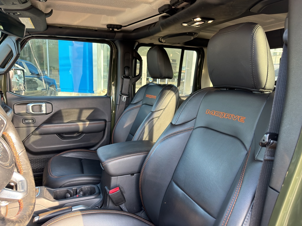 2021 Jeep Gladiator Mojave 4WD - CARFAX 1-Owner, V6 3.6L, located in Palestine TX. Rugged capability meets refined comfort in this exceptional pre-owned Jeep Gladiator Mojave, built for off-road adventures and everyday driving. Powered by a torquey V6 3.6L gasoline engine and equipped with proven 4WD, this Jeep Gladiator tackles rough trails, highway trips, and everything in between with confidence. Inside, enjoy premium leather seats and Automatic Climate Control that keep driver and passengers comfortable mile after mile. Remote Start adds convenience on chilly mornings or hot Texas afternoons, while the Back-Up Camera makes parking and trailhead maneuvering easier and safer. The Mojave trim brings performance-focused suspension and unique styling cues that enhance both capability and curb appeal. This Jeep Gladiator is CARFAX 1-Owner, reflecting careful ownership and a strong maintenance history - a smart choice for buyers seeking reliability in a pre-owned truck. With classic Jeep design, removable roof and doors for open-air freedom, and durable bed utility, this Jeep Gladiator Mojave is ready for work, weekend escapes, and off-road thrills. Located in Palestine TX, this 2021 Jeep Gladiator Mojave is a standout pre-owned 4WD pickup with comfort, capability, and practicality. Schedule a test drive today to experience the V6 power, Mojave performance upgrades, and the confidence that comes with a CARFAX 1-Owner vehicle.