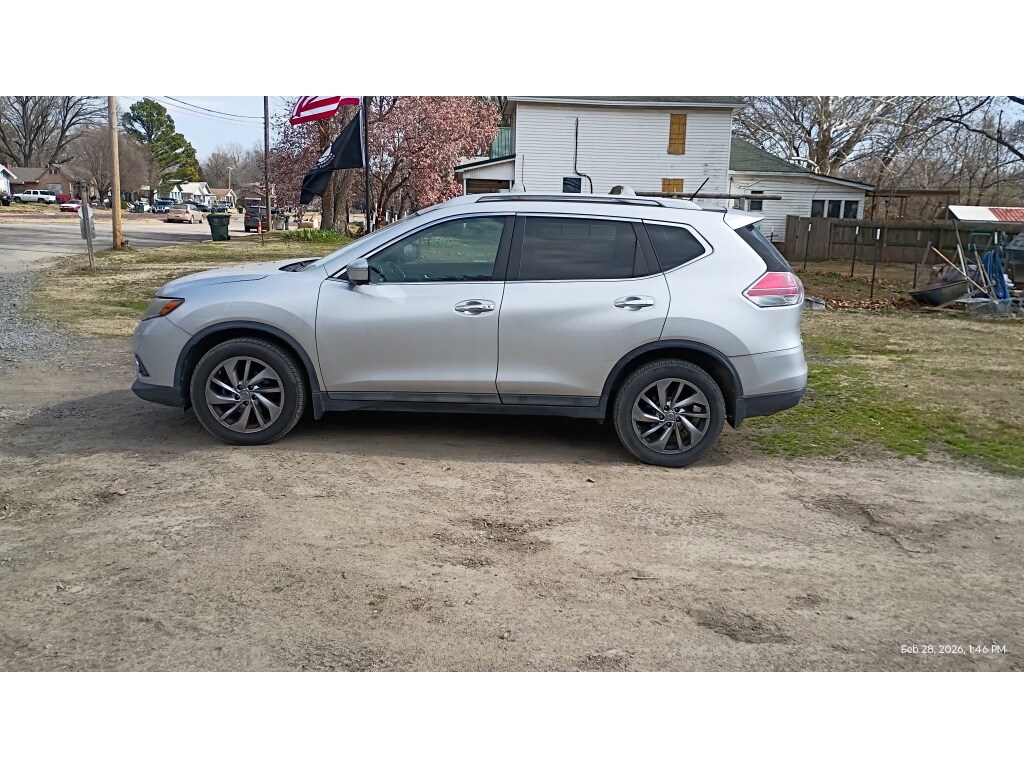 For sale in Muskogee OK: a meticulously maintained 2015 Nissan Rogue SL with AWD and the efficient 2.5L 4-cylinder gasoline engine â" the best price available in the area. This Nissan Rogue SL blends confident all-wheel-drive capability with refined comfort, making it perfect for daily commuting, family trips, and Oklahoma weather. Interior features include premium leather seats, a factory navigation system for easy route guidance, XM Radio for endless listening options, and automatic climate control that keeps everyone comfortable. Safety and convenience are strengthened with Forward Collision Warning to help reduce the risk of front-end impacts, as well as responsive handling and smooth shifting for relaxed highway cruising. Well-appointed and thoughtfully equipped, this Nissan Rogue SL delivers excellent fuel economy and low ownership costs without sacrificing versatility. Cargo space is generous and the rear seats fold to expand storage for gear or shopping. Recent maintenance and careful use ensure dependable performance for miles to come. Stop by in Muskogee OK to see this 2015 Nissan Rogue SL AWD in person and compare prices â" you'll find it's competitively priced and ready to drive today. Financing options available for qualified buyers. Contact us to schedule a test drive and secure the best-priced Nissan Rogue SL in Muskogee.